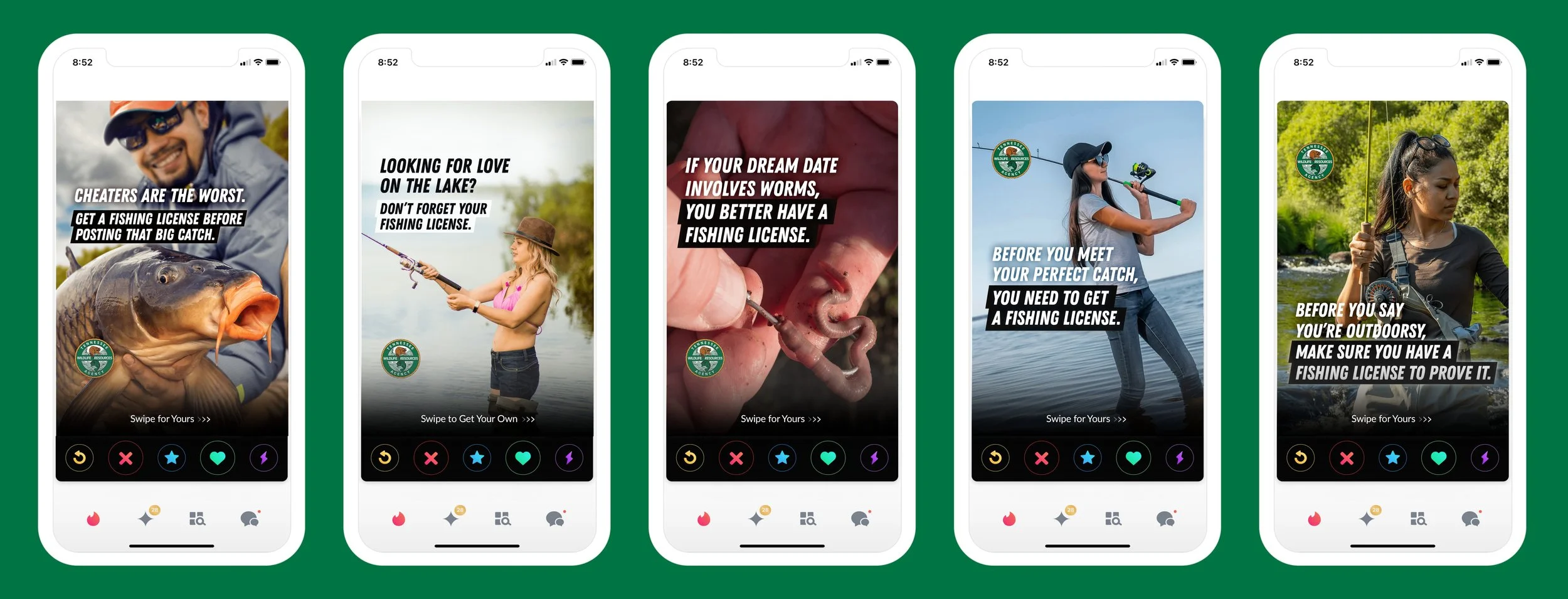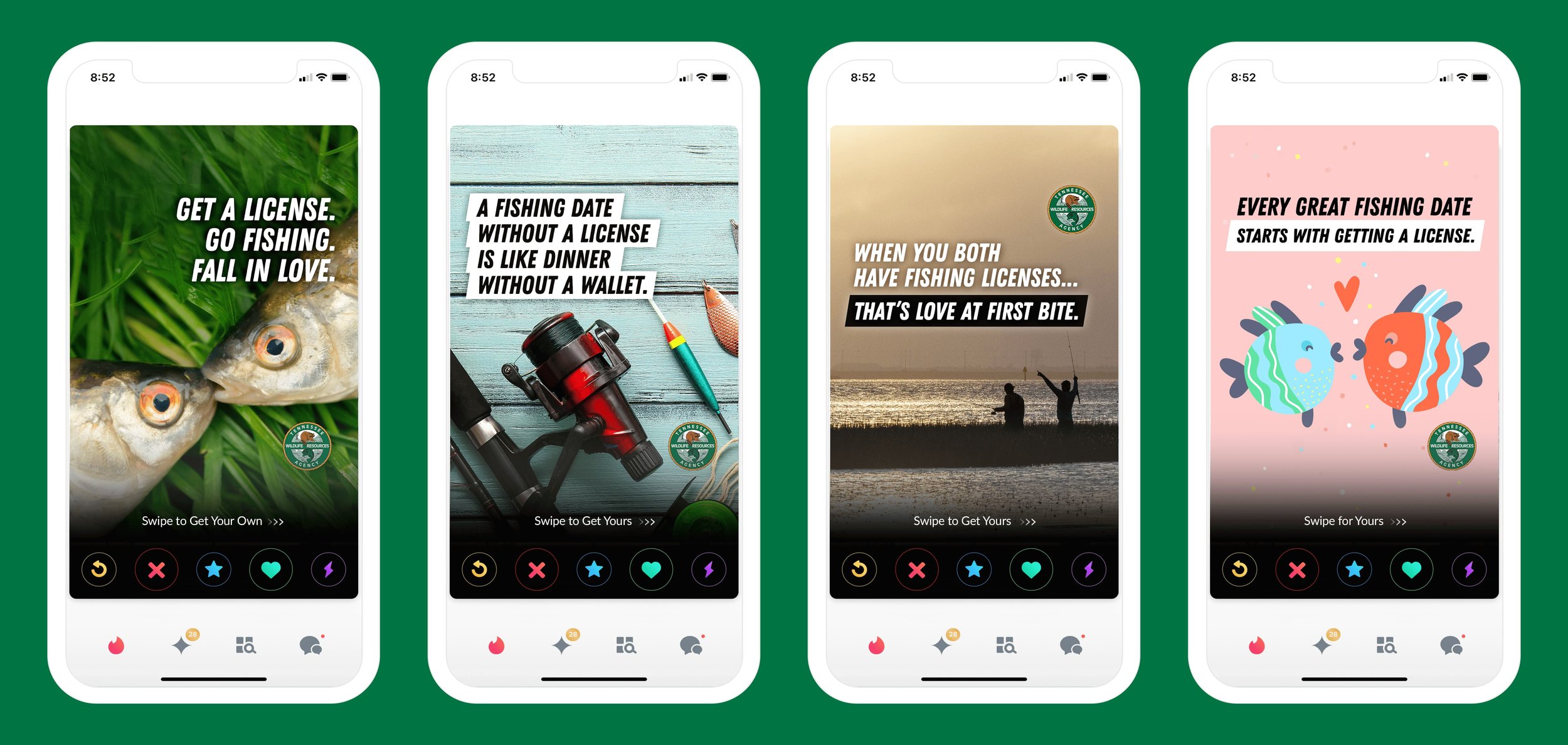 Dating apps are swimming with photos of men holding fish, so our friends at the Tennessee Wildlife Resources Agency asked us to create Tinder ads that reminded all those lovebirds to get their license before posting that big catch. The headlines almost wrote themselves.